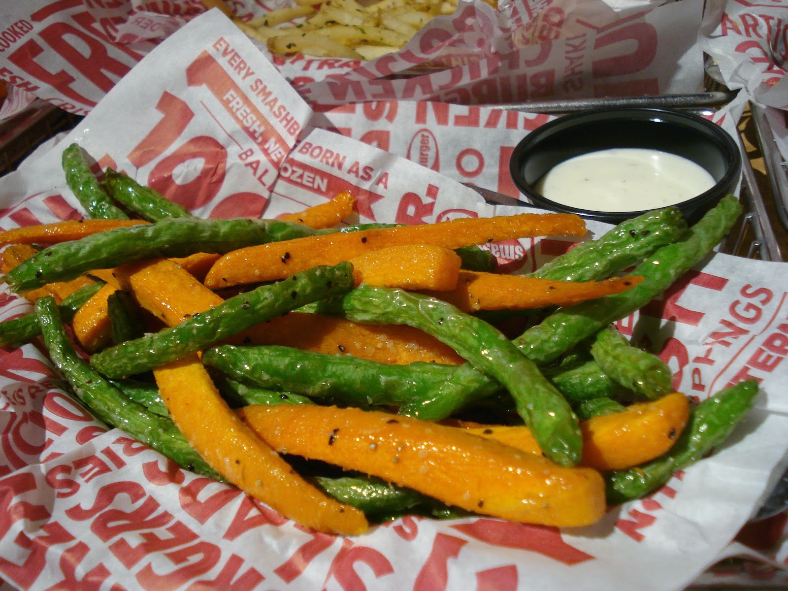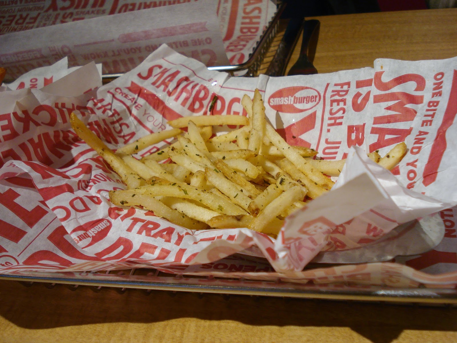 The Haystack Onions–basically thin onion rings–were also delicious, as were the regular SmashFries, tossed with rosemary, olive oil, and garlic.