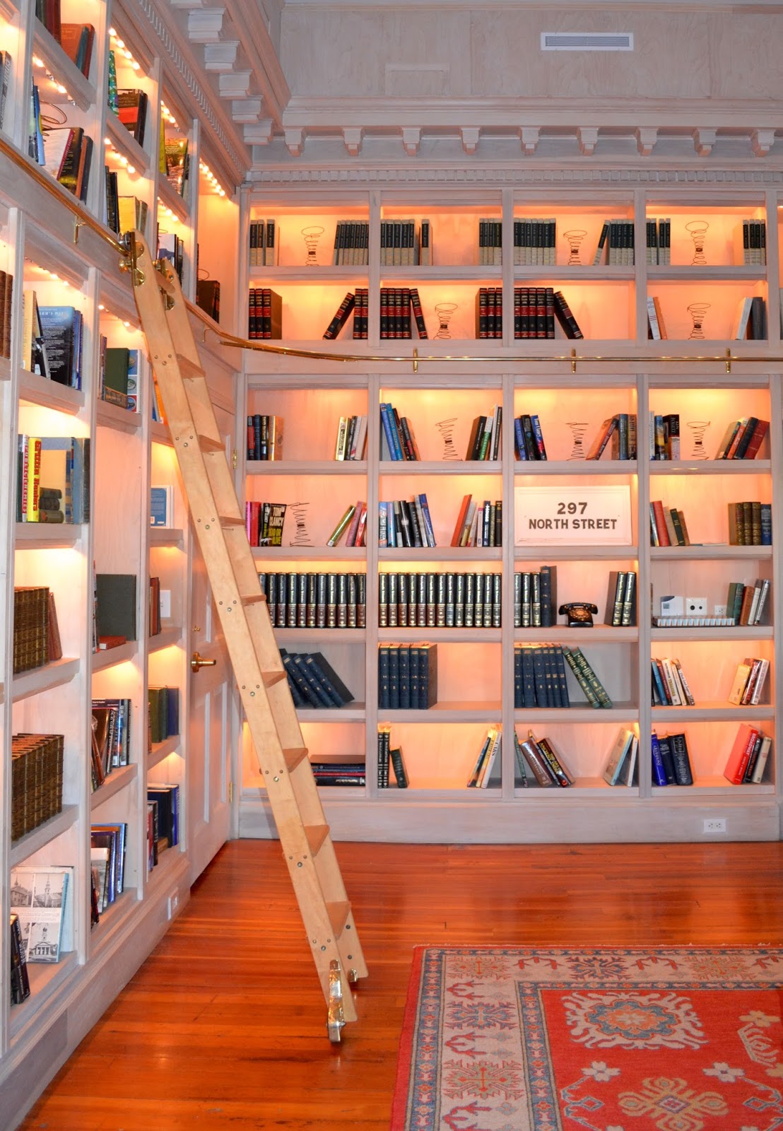But it takes its name from the 125 lighted bookshelves covering two walls of the main room. There’s even a rolling ladder to help guests negotiate the curated collection of books, games, and objets d’art.